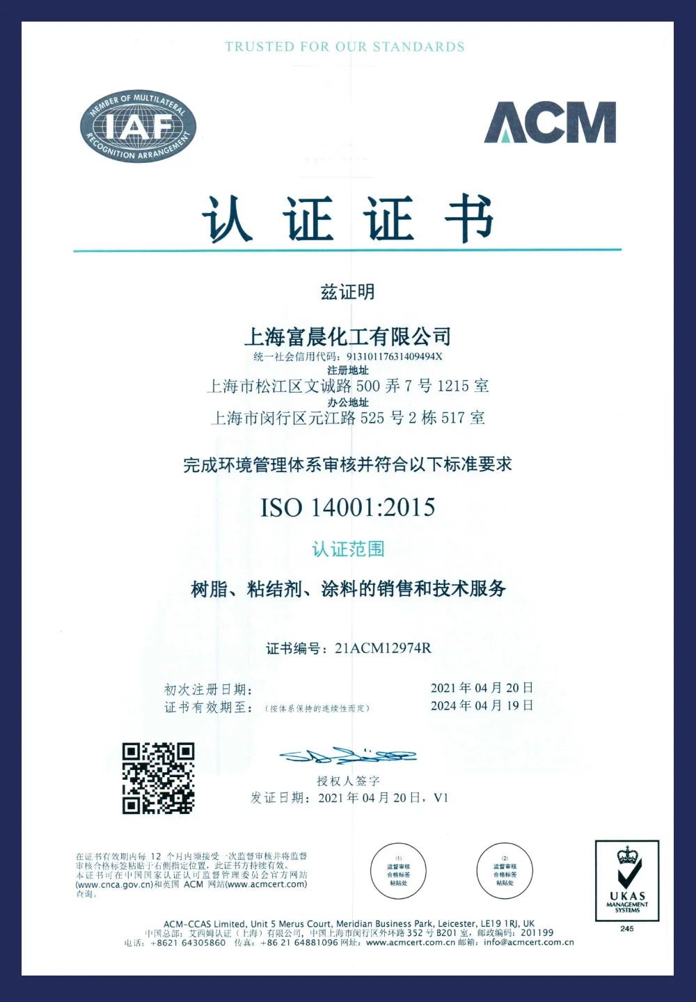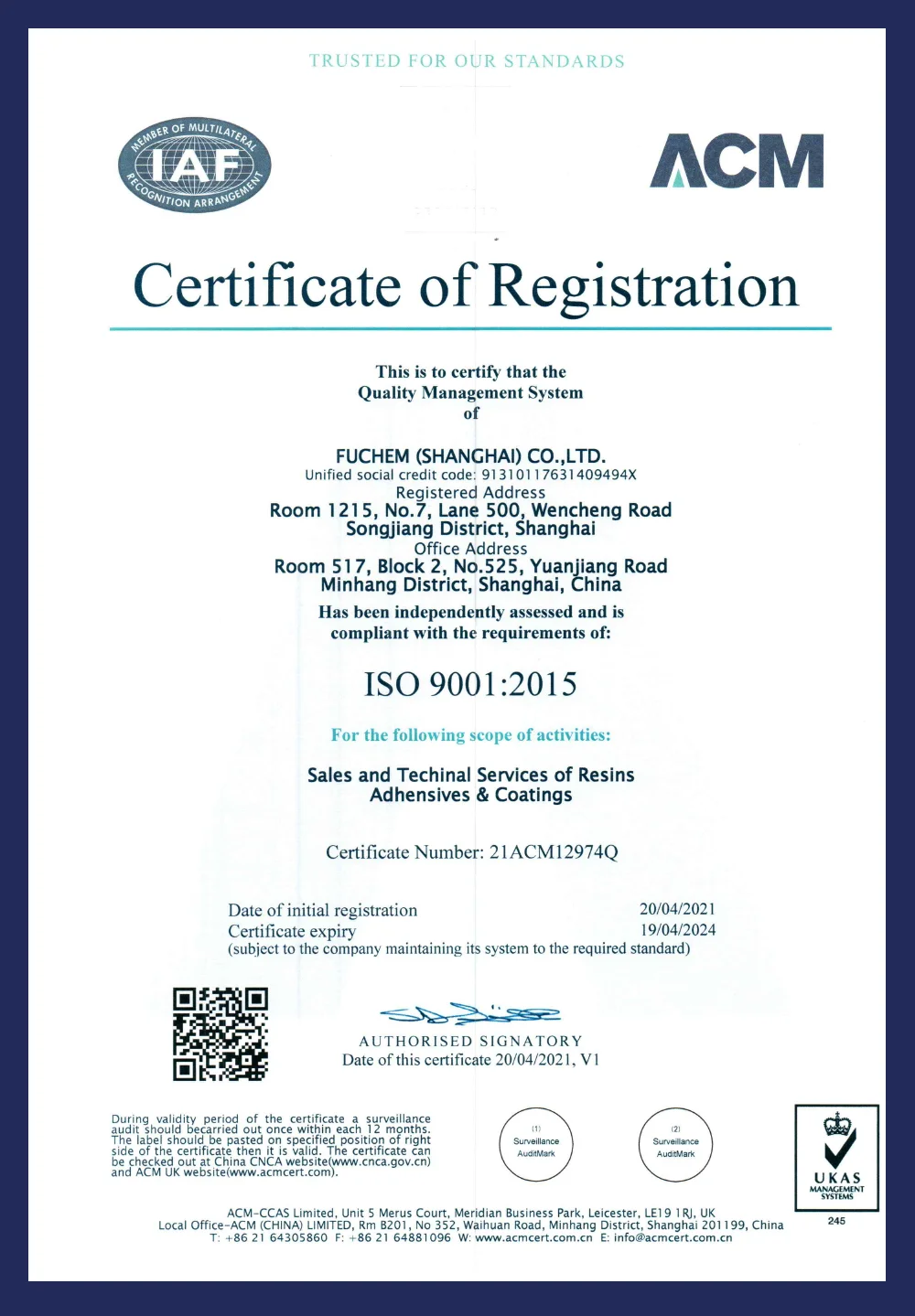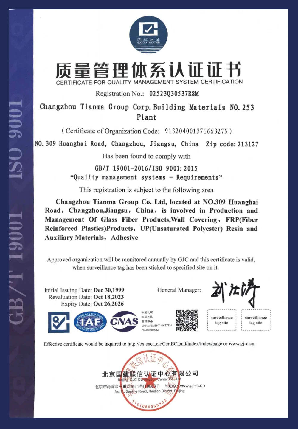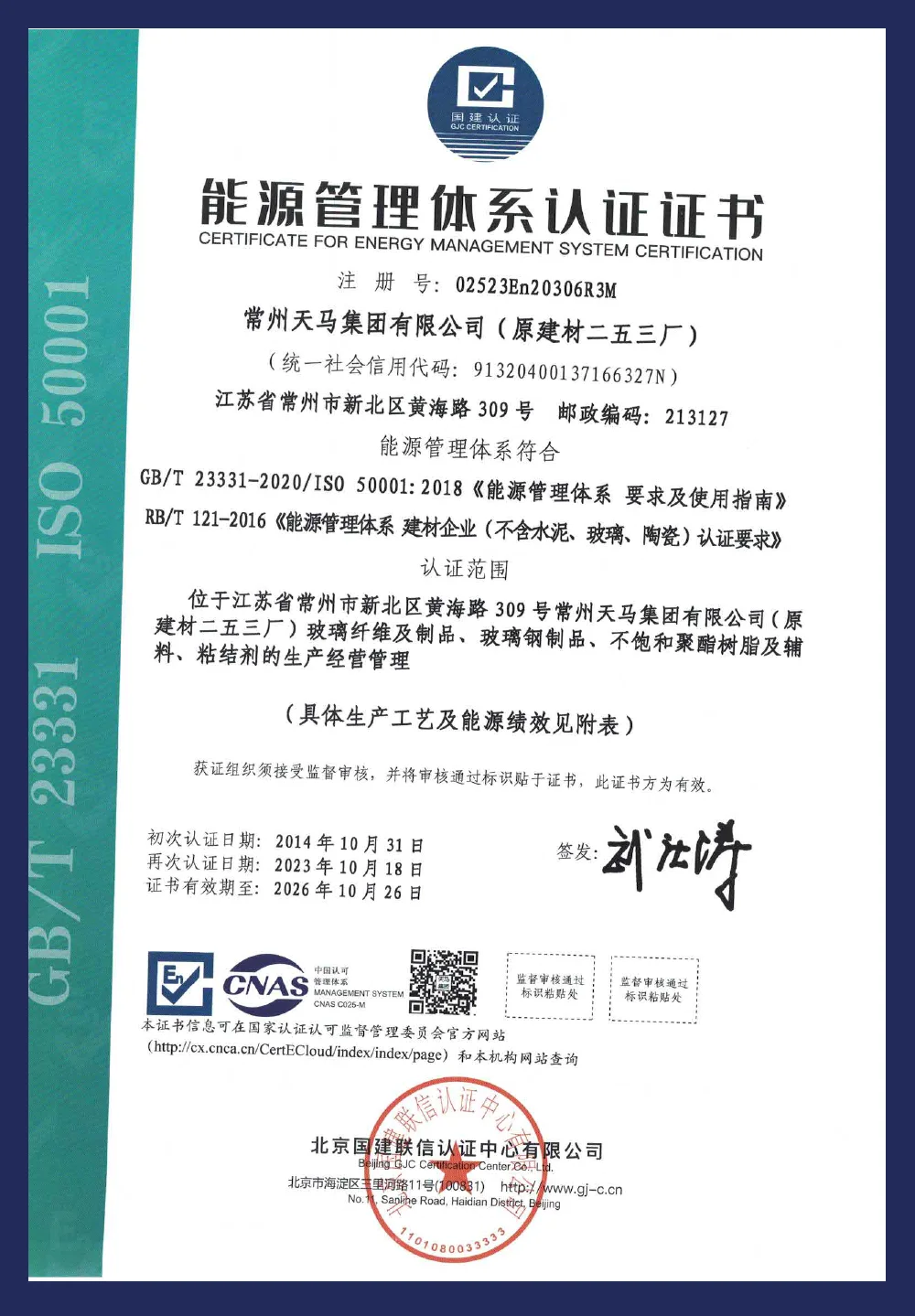 Our Certificate